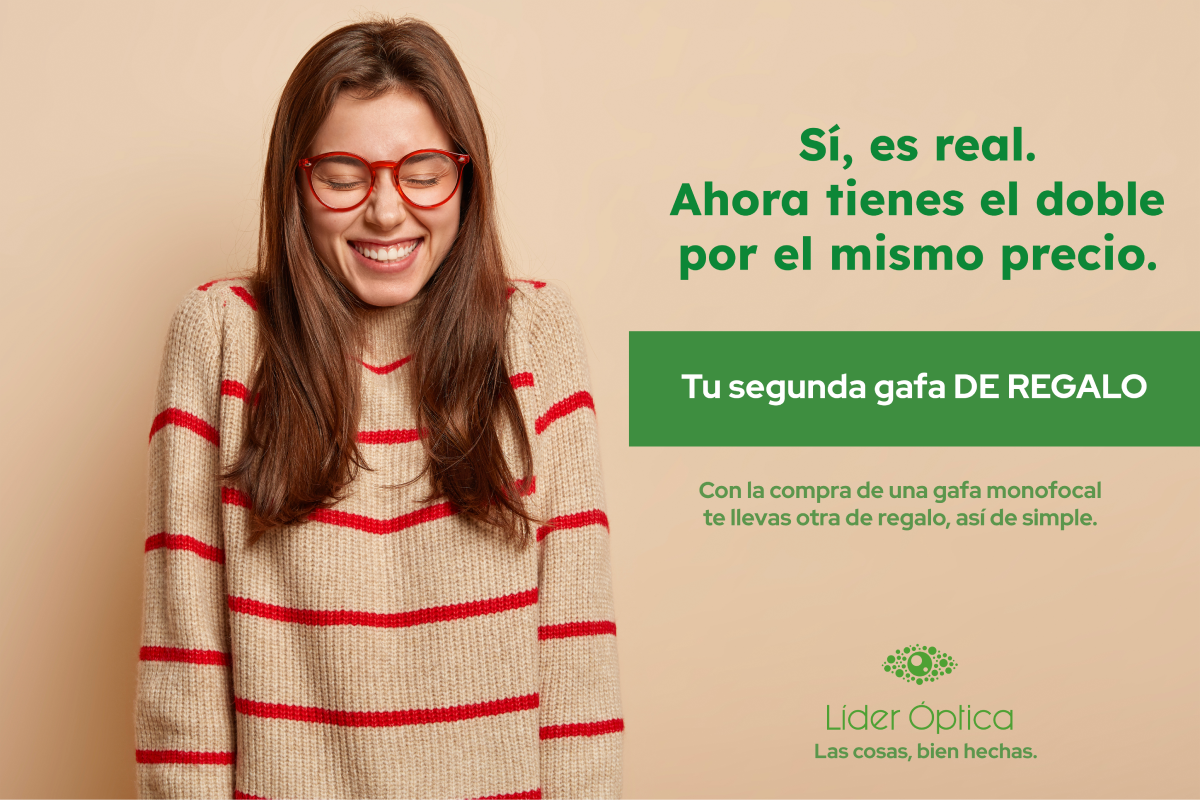 Ahora tienes el doble por el mismo precio. Con la compra de tu gafa graduada puedes llevarte tu segundo par de regalo.