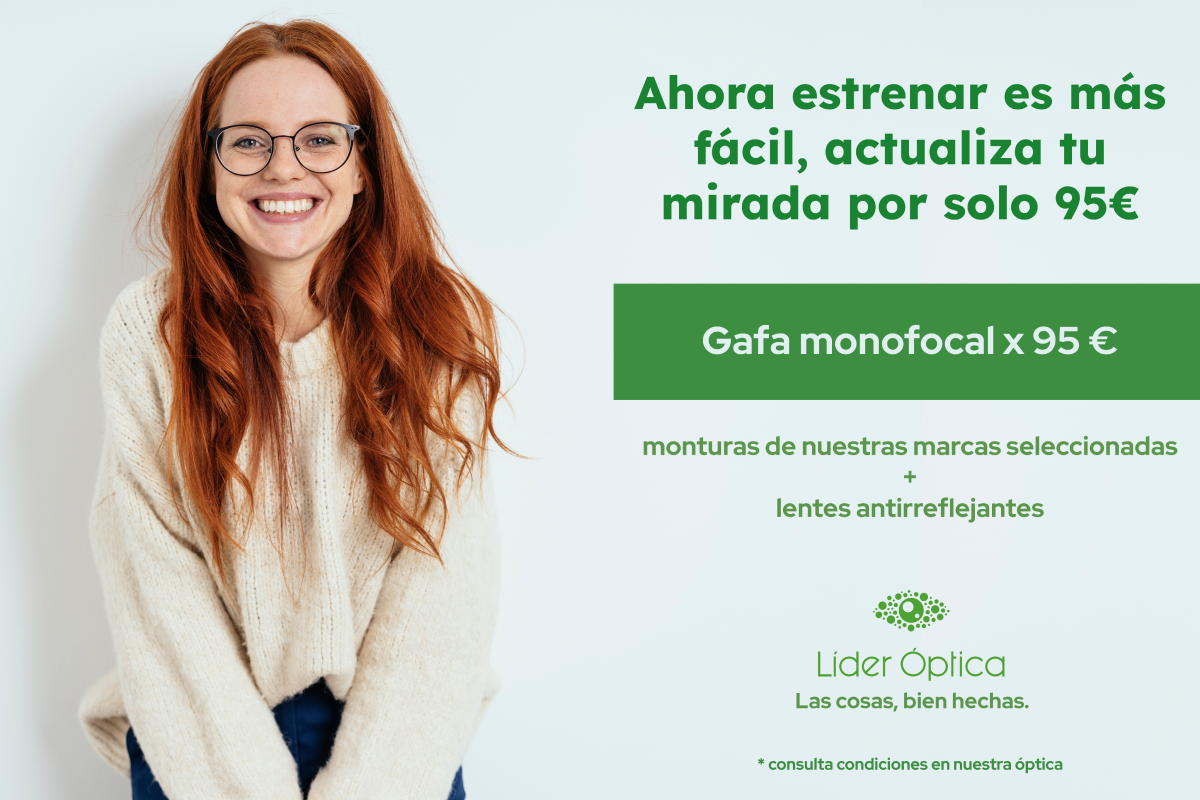 Tu gafa graduada monofocal con montura seleccionada y lentes antirreflejantes de marca por 95€.